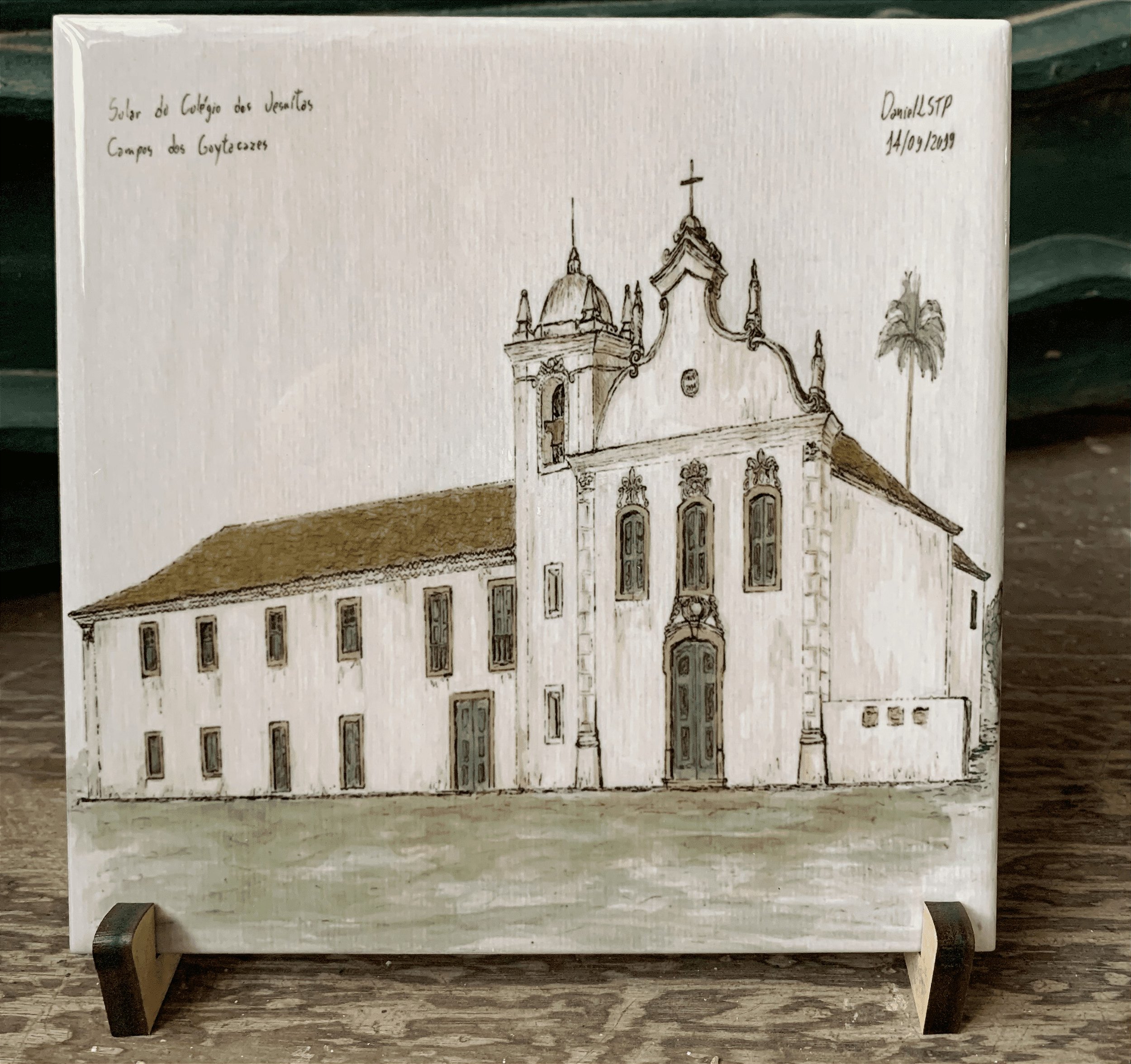 Azulejo decorativo de porcelana com ilustração do Solar do Colégio, Campos dos Goytacazes - RJ.